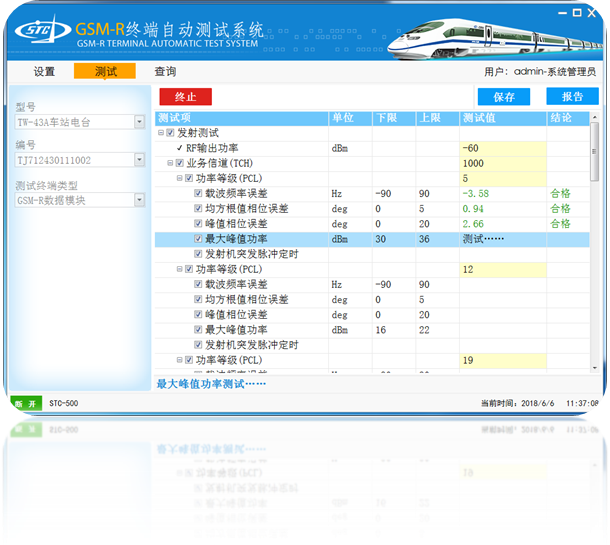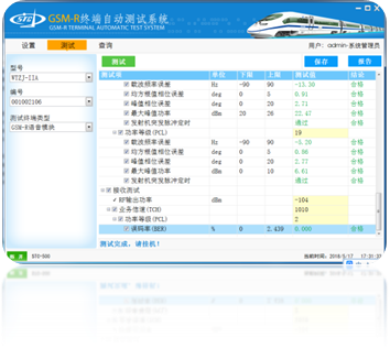 該系統(tǒng)可以完成目前鐵路GSM-R/GPRS終端設(shè)備發(fā)射機和接收機射頻指標的全自動檢測,測試精度和準確度均達到業(yè)內(nèi)良好水平,該系統(tǒng)具有測試信息和設(shè)備信息電子臺帳管理功能;對測試結(jié)果進行自動合格性判斷,并形成電子臺帳;測試結(jié)果可下載并打印;可記錄所測電臺的型號、編號、測試人和測試日期;具有對測試記錄存儲和查閱的功能,可幫助現(xiàn)場測試人員輕松完成定期指標檢測及數(shù)據(jù)記錄工作。