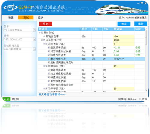 系統(tǒng)根據(jù)鐵路實際測試需求,內(nèi)置各項所需測試指標,但同時用戶可以根據(jù)測試需要,自行選擇相關(guān)測試指標,同時系統(tǒng)內(nèi)置測試門限,自行判斷測試結(jié)果是否合格