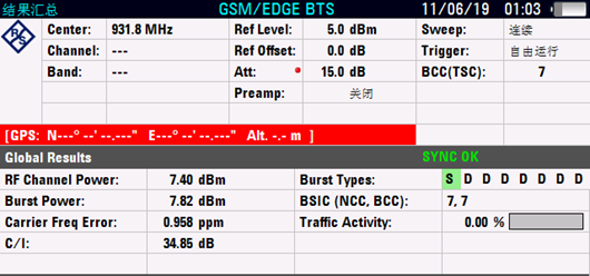 隨后通過使用我公司GSM-R干擾監測儀對現場測試環境進行小區掃描可以發現當前鐵路GSM-R使用小區主BCCH頻點為1004,其小區位置為LAC:22787、CI:35;小區掃描結果如下圖所示: